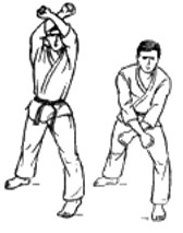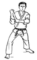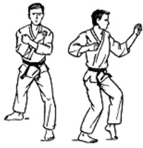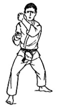 Применяется при отражении ударов рукой. Блокирующая рука соответствует впереди стоящей ноге.
