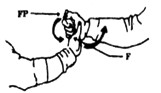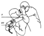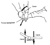 При рукопожатии или ситуации, сходной с ним, вы можете обхватить большой или любой другой палец противника. Ваш большой палец оплетает палец оппонента, надавливает на него и отгибает назад. Данное воздействие довольно болезненно. Палец противника можно вывернуть наружу.