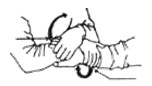 Захватите кисть противника правой рукой, а его запястье левой рукой. Выворачивайте предплечье оппонента внутрь до тех пор, пока мизинец не окажется вверху, а ладонь наружу. Правой рукой надавите на запястье противника вниз. Одновременно левой рукой выгибайте и тяните кисть захваченной руки вверх вперед.