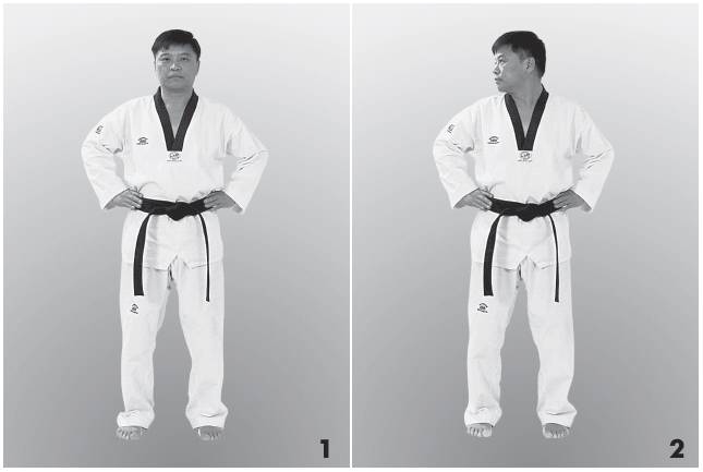 Техника выполнения: примите исходное положение – туловище естественно выпрямлено, ноги на ширине плеч, руки на поясе, голове держать прямо, взгляд направлен вперед.