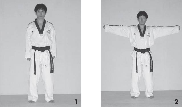 Техника выполнения: примите исходное положение – туловище естественно выпрямлено, ноги на ширине плеч, руки опущены вдоль тела, кисти сжаты в кулаки, голову держать прямо, взгляд направлен вперед.
