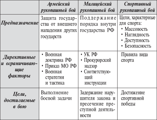 Для того чтобы осознанно подходить к изучению рукопашного боя, необходимо определить его общую классификацию. Классификация не только отражает и суммирует достижения в данном виде деятельности, но и определяет его уровень развития на данном этапе.