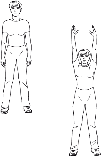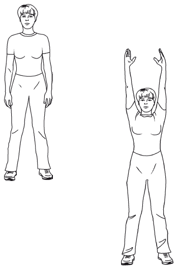 поднимитесь на носки, вытяните руки вверх и максимально потянитесь всем телом. Плечи расправлены, взгляд направьте на руки, представьте, что вы устремляетесь ввысь. Задержитесь в этом положении на 10–30 счетов. Затем расслабьтесь и вернитесь в исходное положение.