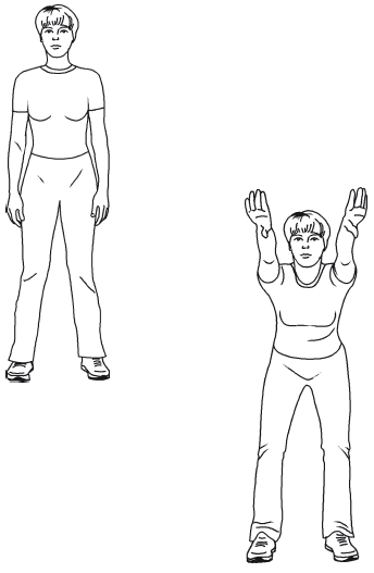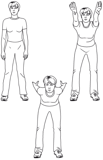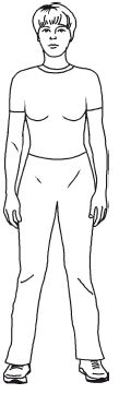 станьте прямо, ноги на ширине плеч, живот подтянут, руки свободно расположены вдоль туловища.