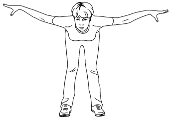 выполните наклон туловища вперед, параллельно поверхности. Вытяните руки в стороны, колени прямые. Потянитесь в этом положении, стараясь растянуть руки в стороны, а туловище вперед. Задержитесь в этом положении на 10–30 счетов (в зависимости от вашего уровня физической подготовки). Расслабьтесь и вернитесь в исходное положение.