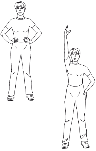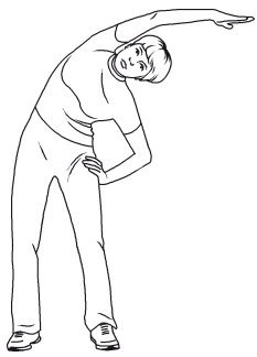 Типичные ошибки: подъем плеча во время вытягивания руки вверх; наклон туловища вперед, а не в сторону; согнутая спина; резкое выполнение движений.