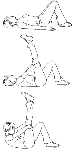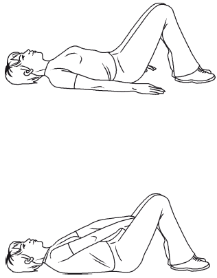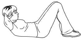 Исходное положение: лежа на спине, ноги согнуты в коленях, стопы прижаты к поверхности, руки свободно расположены вдоль туловища.
