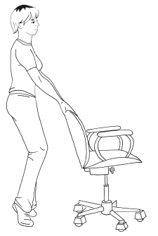 Исходное положение: сидя напротив стула или стола, прижмите стопы вытянутых ног к ножкам опоры, выпрямите спину, округлите плечи, чтобы снять напряжение с мышц спины.