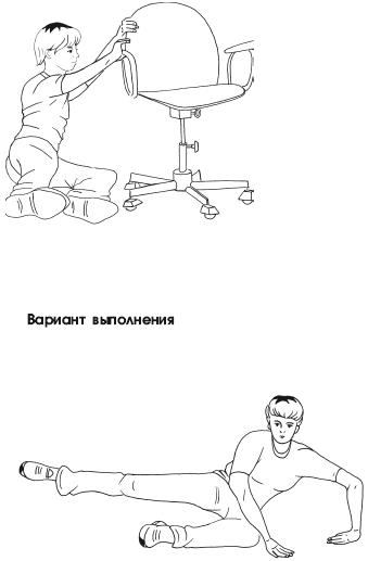 Исходное положение: сядьте лицом к опоре и возьмитесь за нее руками. Левая нога согнута в колене и расположена перед вами, правая нога прямая вытянута в сторону.