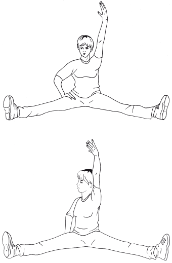 Техника выполнения: слегка развернув плечи в сторону правой ноги, выполните медленный наклон туловища вправо к ноге. Затем переведите правую руку к левой, скрестите руки на голени, разведите в стороны локти и медленно, с амплитудой не более одного сантиметра выполните плавные наклоны к ноге. Расслабьтесь и, помогая себе руками, вернитесь в исходное положение. Выполните упражнение в другую сторону.