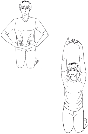 Исходное положение: стоя на коленях, подогнув ноги под себя, опустите ягодицы на пятки. Спина прямая. Руки расположены на поясе.