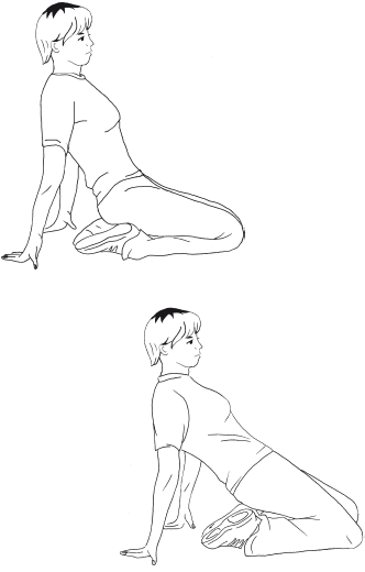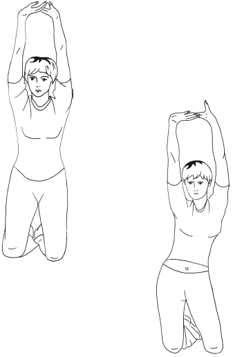 Исходное положение: сидя на коленях, подогнув ноги под себя, ягодицы на пятках, упор руками сзади.