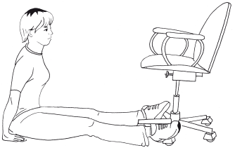 Исходное положение: сидя спиной к опоре, руки вверху и держатся за нее (если нет возможности держаться за опору вверху, выполните упор руками сзади), тело расслаблено, ноги соединены и вытянуты перед собой.
