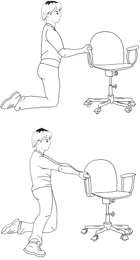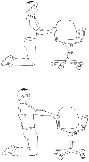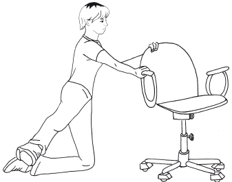 Исходное положение: стоя на коленях перед опорой, руки согнуты в локтях и расположены на опоре, ноги вместе, стопы соединены.