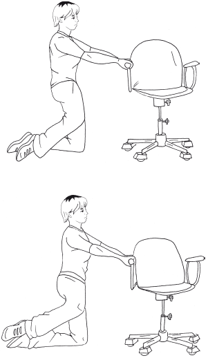 Техника выполнения: в этом положении, напрягая мышцы бедер, попытайтесь сжать ножки опоры стопами. Расслабьтесь и снова повторите сжатие. Снова расслабьтесь и напрягите мышцы бедер настолько, насколько сможете.