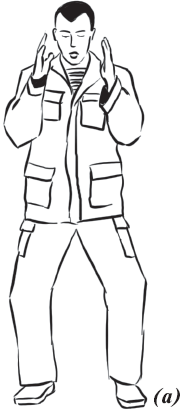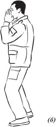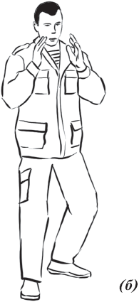 Рабочая стойка аналогична предыдущей, только снимаем либо левостороннее, либо правостороннее сложение (рис. 3), голова слегка опущена либо смотрит по горизонту (очень похоже на боксерскую стойку), руки могут быть чуть впереди либо чуть ближе к туловищу, плечи спокойно опущены, спина прямая.