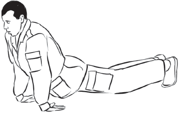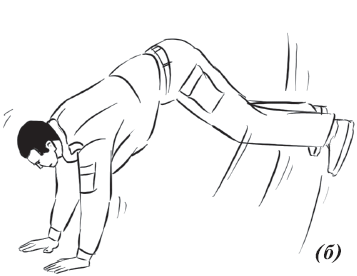 Упражнение «крокодил» (рис. 23). Грудь, таз должны находиться на высоте 10 сантиметров от плоскости пола. Руки располагаем шире плеч, ноги – на ширине плеч.