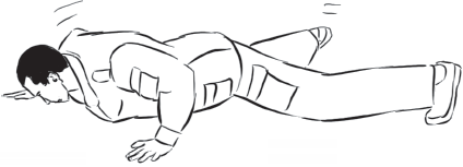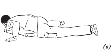 Выполнив данное упражнение, переходим на плоскость пола (рис. 16). Руки находятся на груди либо за головой. При переходе на живот руки вытягиваются впереди себя. В данном упражнении работают не только ноги, но и таз.