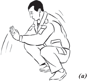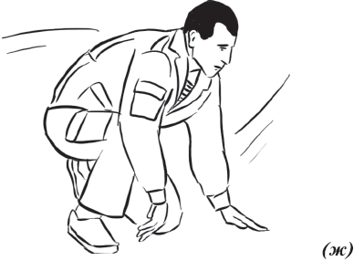 Упражнение «лягушка 2» (рис. 25). Исходное положение – сидя в полном приседе. Делаем прыжок вперед, пытаясь максимально распрямить тело в полете. Первыми касаются пола руки, затем стопы ног. Аналогично упражнению «лягушка 2» выполняется упражнение«лягушка 3», но в обратной последовательности.
