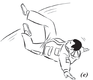 Комплексное упражнение из шести элементов (рис. 29) включает в себя падение, переворот, кувырок назад через правое плечо, опять падение и кувырок через левое плечо, подъем и прыжок в любую другую сторону.