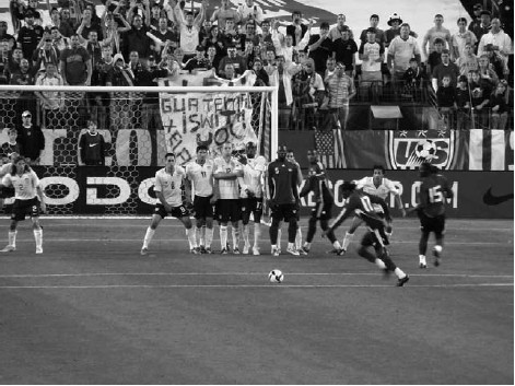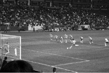 Рис. 1.9. Один из стоящих в «стенке» игроков держит ноги врозь, что делает ее ненадежной