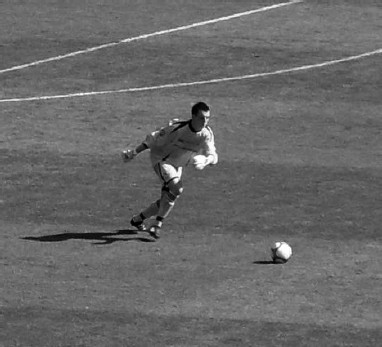 Полевой игрок – так называют всех игроков футбольной команды, за исключением вратаря. Строго говоря, вратарь тоже является полевым игроком, поскольку находится в поле, но, ввиду того что его рабочее место – вблизи собственных ворот, его решено не относить к полевым игрокам. Однако некоторые вратари любят действовать и как полевые игроки (рис. 1.7).