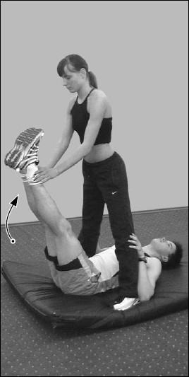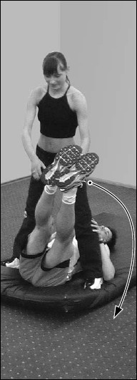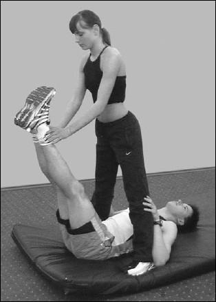 1 Примите исходное положение: лягте на спину и обхватите руками ноги партнера, который стоит над вами. Ноги удерживайте поднятыми вверх.