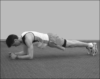 1 Примите исходное положение: лягте на пол, а затем упритесь в него локтями, прямые ноги должны стоять на носках. Замрите в этом положении, приняв позу «планки».
