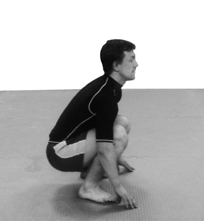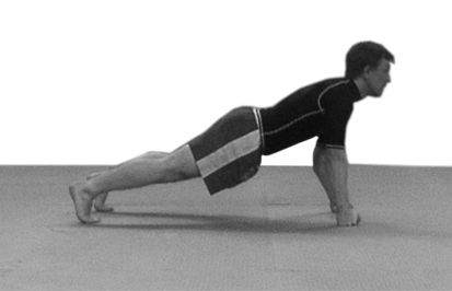 Весь этот комплекс упражнений на развитие силовой выносливости выполняется без отдыха, одно упражнение следует за другим и выполняется на максимальной скорости. Начинайте отрабатывать этот комплекс, для начала исходя из своих физических возможностей, и постепенно подходите к выполнению всего комплекса без отдыха, доводя количество повторов до указанных нормативов. Со временем можно будет усложнить выполнение упражнений. Например, можно модернизировать Лягушку так, чтобы после прыжка вверх во время приземления откидывать ноги назад, принимая упор лежа, руки прямые, таз прижат к земле, потом снова группируясь и выпрыгивая вверх (рис. 17—21).