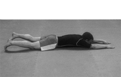 3. Обратная книжка – лягте животом на пол и, раскинув руки и ноги в стороны, выполняйте прогибы спины, одновременно поднимая ноги и корпус как можно выше. Постепенно доведите количество повторений до 100—120 (рис. 5, 6).