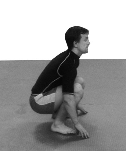 4. Лягушка – выполните полный присед, коснувшись ладонями пола, а потом, распрямляясь, как лягушка в прыжке, резко выпрыгните вверх, как можно выше раскинув руки и ноги в стороны и прогнувшись в спине. Опустившись на землю, примите первоначальное положение и сразу же выпрыгивайте снова. Постепенно доведите количество непрерывных выпрыгиваний минимум до 30—40 (рис. 7, 8).