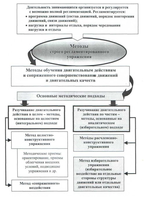 Рис. 19. Характеристика методов строго регламентированных упражнений, направленных на обучение двигательным действиям и сопряженное совершенствование движений и двигательных качеств