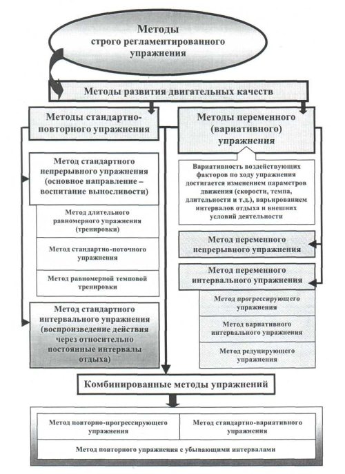 Рис. 20. Характеристика методов строго регламентированных упражнений, направленных на развитие двигательных качеств