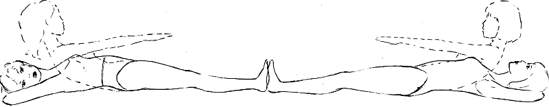 14. Исходное положение то же. Поочередно наклоняйтесь вперед с отрыванием партнерши, лежащей в это время на вашей спине, от пола. Повторите по 5 раз.