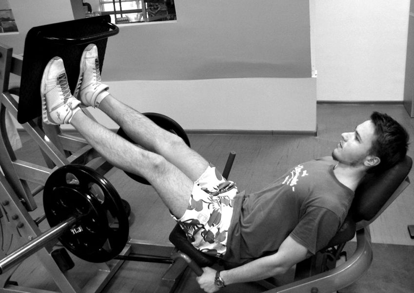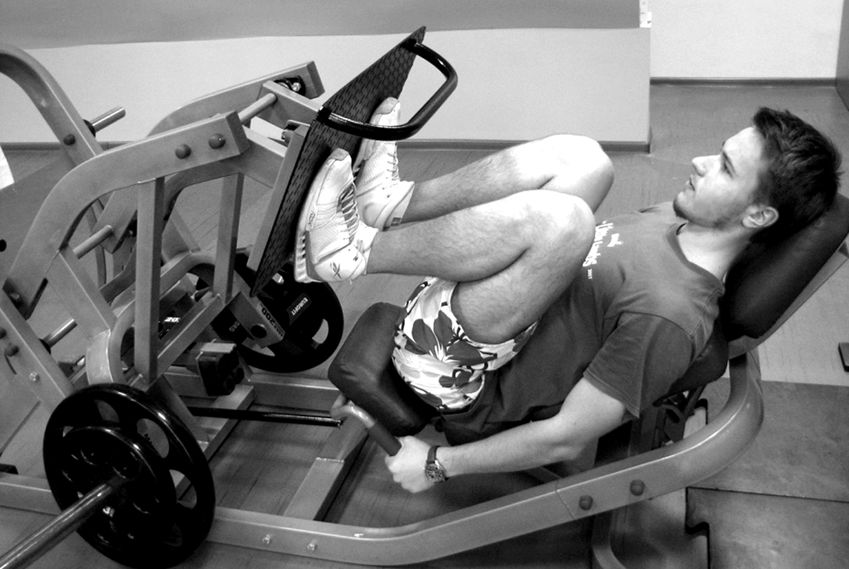 Выполнять жим ногами вверх на выдохе (рис. 2.26, 2.27) с посильной нагрузкой до 10–15 раз.