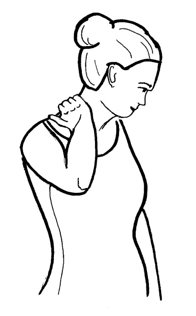 Если вы не почувствовали головокружения, начните осторожно вращать головой. Мягко нагните голову к правому плечу, потом опустите подбородок к груди и наконец нагните голову к левому плечу. Медленно выпрямите шею. Выполняя упражнение, можете поддерживать голову руками (см. рис. 3). Повторите трижды в обоих направлениях.