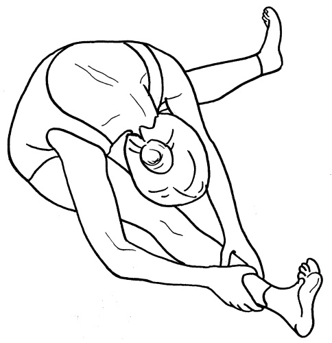 Если вы без труда достаете до пальцев ног и при этом можете согнуть локти, то левой рукой возьмитесь за большой палец ноги, а правой – за стопу.