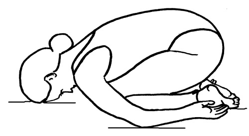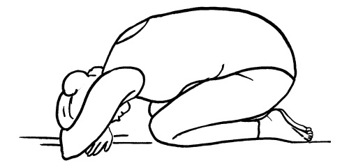 Эта асана предназначена для отдыха. Плавно наклонитесь вперед и коснитесь головой пола (рис. 28). Руки слегка согните в локтях и свободно положите на пол сбоку от себя. Плечи и шею расслабьте. Устройтесь в этой позе поудобнее и сохраняйте ее не меньше минуты. Дышите свободно.