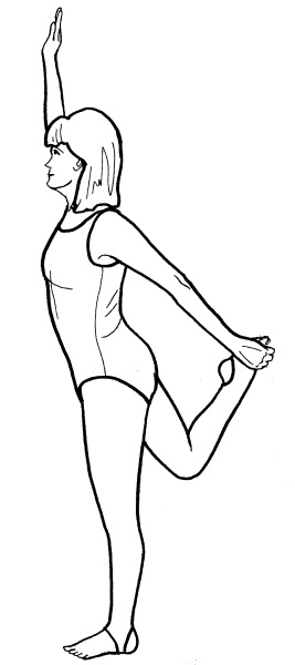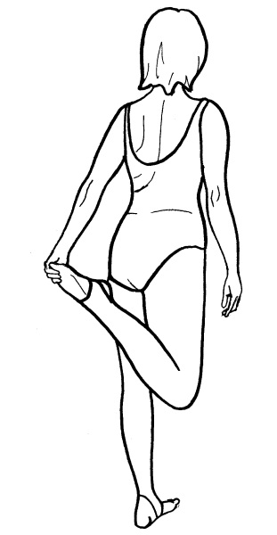 Исходное положение. Станьте прямо. Согните правую ногу в колене и сзади возьмитесь левой рукой за правую стопу (рис. 35).