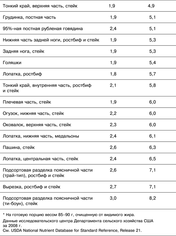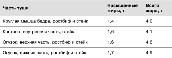 Таблица 2.3. 20 самых постных частей говядины[1]
