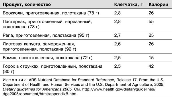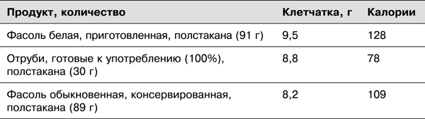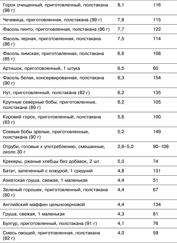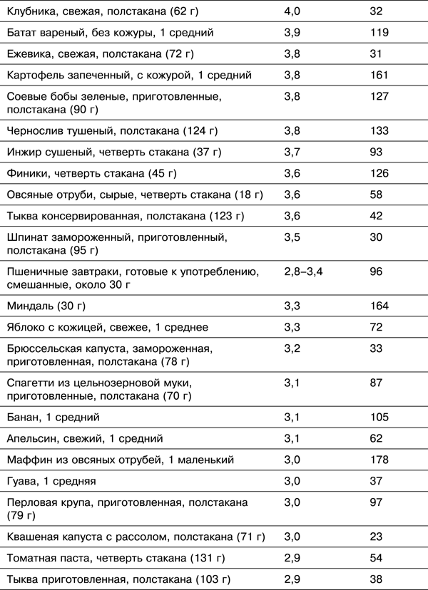 Таблица 3.1. Источники пищевой клетчатки (расположены по убыванию ее количества)