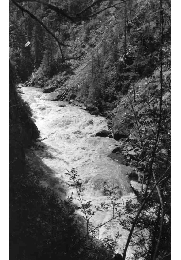 «Июль 19. Утром сильный дождь. Расползлись по палаткам. Акутин перебирает тряпье в подушке. Облака ползут по полке Мажоя. Заснул. Рядом сопят Акутин и Эдик. В 12 вроде бы дождь закончился. Перекус. Потопали на реку. Все прошли «Майскую» нормально. Все вместе пошли с взаимостраховкой длинную (2км?) шиверу 7. Валы – фантастические. Мотает как… в проруби. Рамыч с командой ввалились в центр выходной бочки по уши. Мощь воды страшенная. По-моему, я на такой воде еще не бывал.