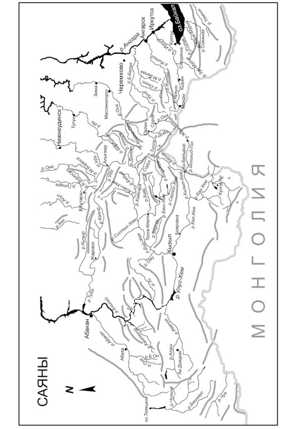Саяны один из наиболее популярных туристcких районов в России. Огромной подковой хребты Саян протянулись от Алтая до озера Байкал чуть севернее монгольской границы. На западе Саяны отделены от Алтая высоким (до 3614м) Шапшальским хребтом. Древние ледники внесли основной вклад в формирование межгорных долин района. Останки этих ледников до сих пор проявляются как плато, называемые здесь «сарамами».