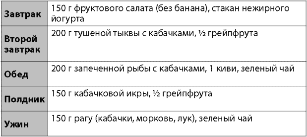 Чудо-овощи обладают мочегонными свойствами, благодаря которым нормализуется водно-солевой баланс и выводится лишняя жидкость из организма. Более того, они не теряют части полезных свойств даже после термической обработки. Именно поэтому кабачковая диета – превосходный способ не только привести себя в отличную физическую форму, но и обогатить организм необходимыми микроэлементами и витаминами (табл. 17–19).