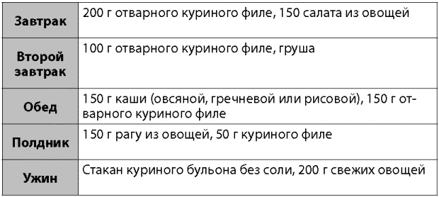 Возможный вариант дневного рациона куриной диеты