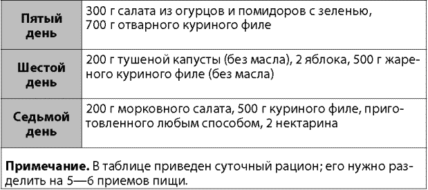 Примечание. В таблице приведен суточный рацион; его нужно разделить на 5–6 приемов пищи.