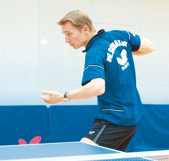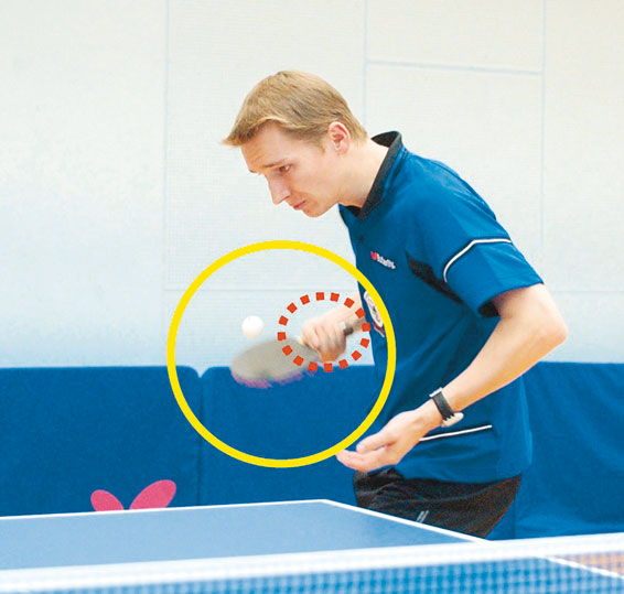 Эта подача получила популярность после того, как две первые вариации потеряли свою новизну и стали привычными. Принцип здесь заключается в том, что игрок ударяет по мячу ракеткой под широким углом, чтобы придать максимальное нижнее вращение. Здесь так же важно положение ракетки, изменение которого может придать разную степень вращения.