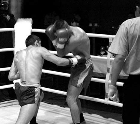 Прямой удар правым кулаком в туловище по технике выполнения близок к прямому удару левым кулаком в голову, с той только разницей, что он направлен в туловище соперника и поворот туловища делается одновременно с уклоном влево.