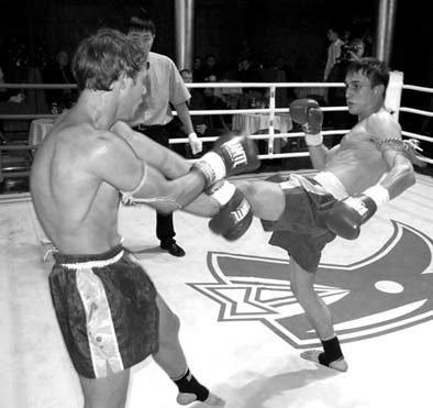 Руку соперника, идущую к цели, тайбоксер встречает правой рукой (ладонной стороной перчатки) около запястья или предплечья и отбивает влево. Самодвижение отбивающей руки невелико – 20–25 см. Но в то же время туловище защищающийся вращает справа налево, что увеличивает размах отбива, а левую руку выводит в исходное положение для ответного контрудара. Вес тела можно переносить, в зависимости от обстановки, на левую или правую ногу. Если нужно сблизиться с соперником, вес тела следует перенести на левую ногу. Тогда вращение туловища произойдет в левом тазобедренном суставе. Если же нужно отойти от соперника, боксер вес тела перемещает на правую ногу, и вращение происходит в правом тазобедренном суставе.