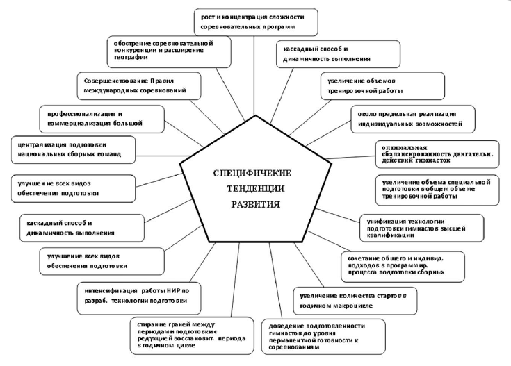 Успешное осуществление подготовки гимнасток высокой квалификации невозможно без систематического и внимательного изучения тенденций развития спорта высших достижений в целом и художественной гимнастики, в частности. Художественная гимнастика является прогрессивно развивающейся системой, поэтому выделение главных тенденций является важнейшим моментом в изучении этого вида спорта.
